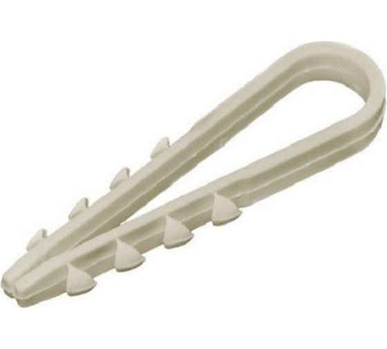 Применение: для монтажа кабельных пучков к бетону, кирпичу. Представляет собой пластиковую петлю с крепежными «усиками». Не предназначен для больших нагрузок. Используется преимущественно в быту и строительстве.
