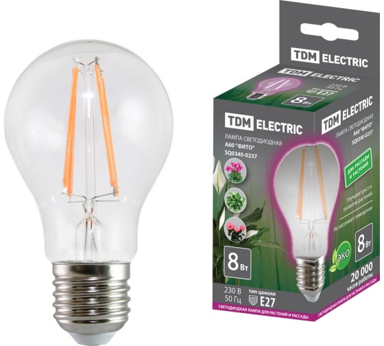 Технические характеристики TDM A60-8 Вт-230 В-E27-CL "ФИТО" 60*108 мм SQ0340-0237