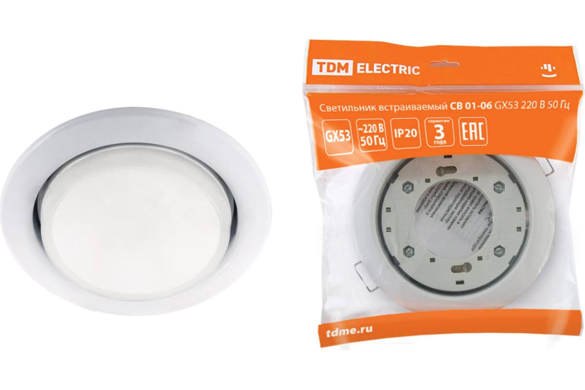 Технические характеристики TDM СВ 01-06 GX53 220 В 50 Гц белый SQ0359-0057