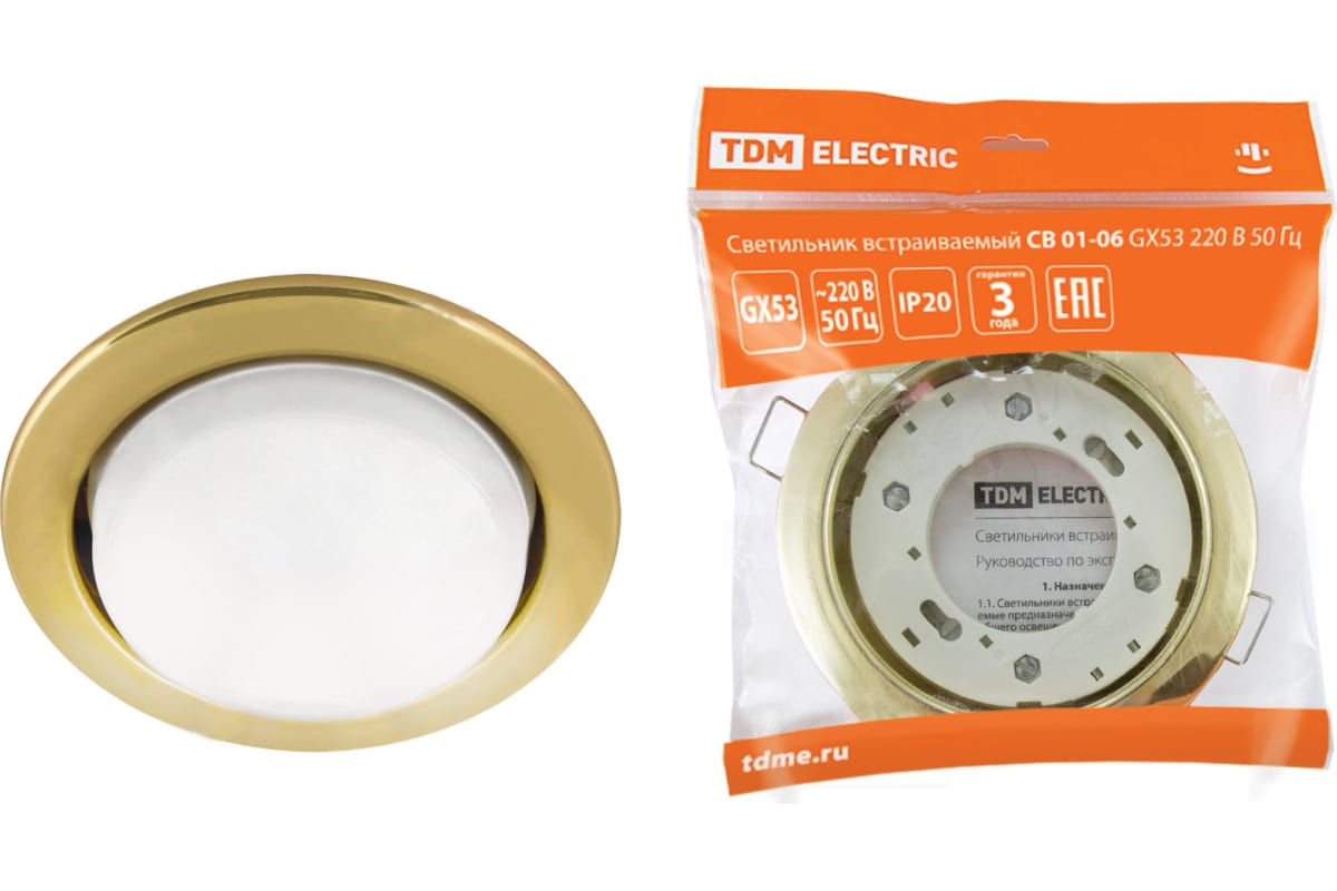 Технические характеристики TDM СВ 01-06 GX53, 220В, 50Гц, золото SQ0359-0059