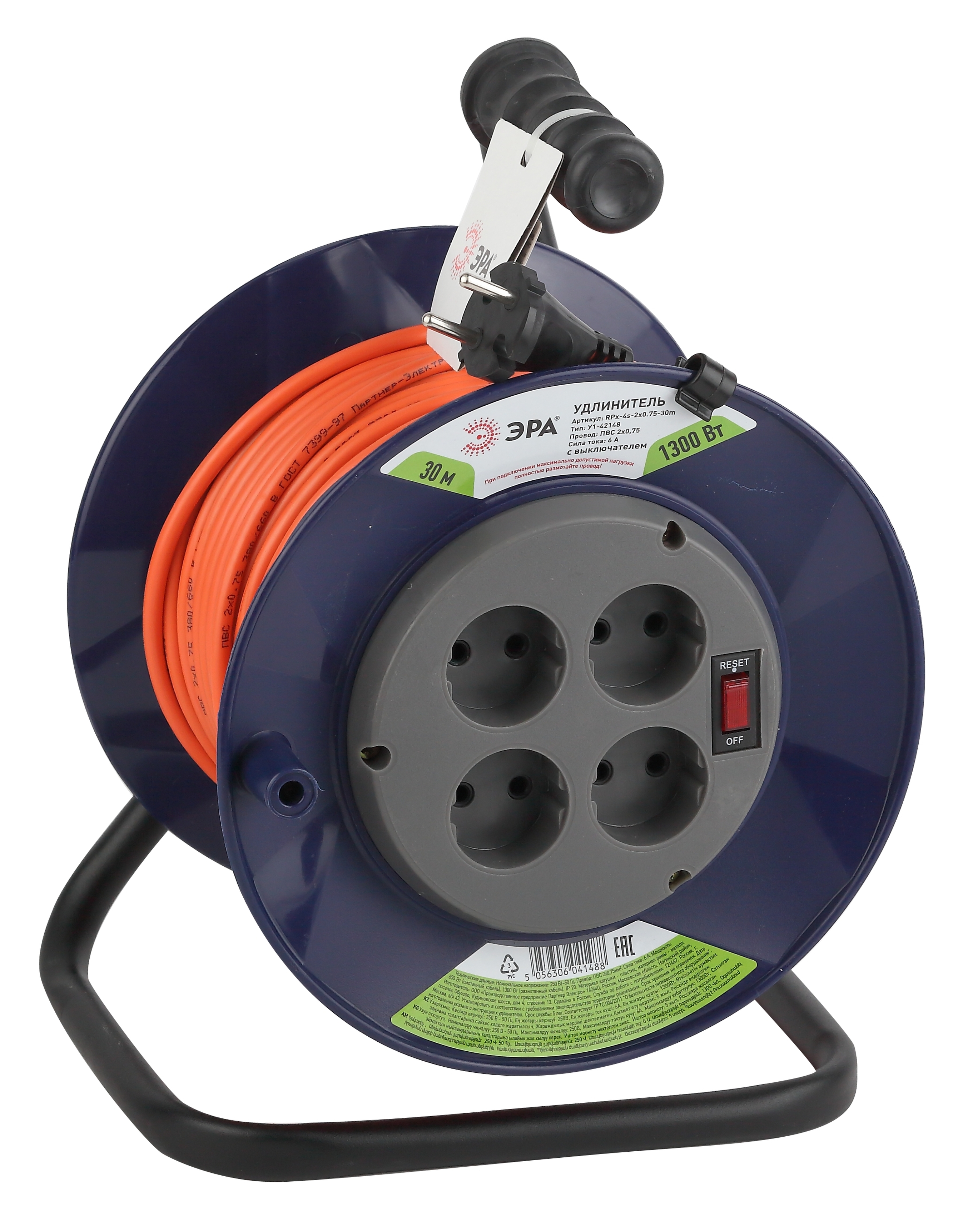 Силовой удлинитель Эра рассчитан на подключение 4 приборов. Он оснащен штепсельной розеткой, неразборной литой вилкой и проводом ПВС 30 мм. Удлинитель позволяет подключить прибор мощностью на расстоянии 30 мм от электросети.