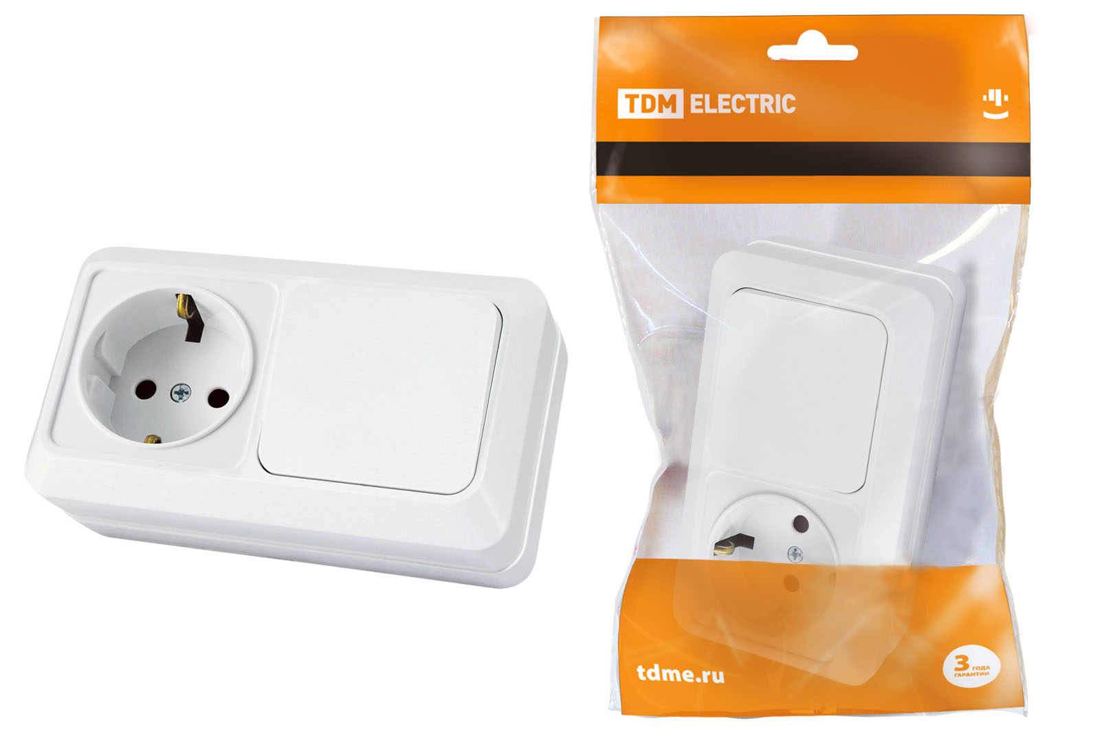 Комбинированный блок TDM — универсальное готовое решение, включающее в себя розетку для питания любых электробытовых приборов и выключатели. Такое устройство часто используется в электроцепи c номинальным рабочим напряжением 250 В и силой тока 16 А.