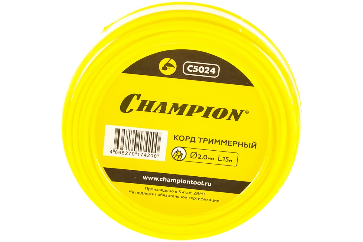 Корд Star 2.0мм* 15м CHAMPION C5024 является расходным материалом к триммерам всех моделей. Корд имеет сечение - звездочка, и благодаря острым граням легко справляется даже с жесткой травой, а также снижает тормозящее действие на двигатель.