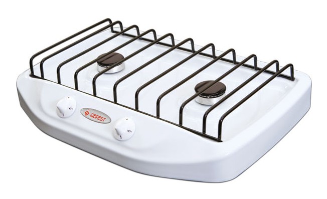 Компактная настольная газовая плита плита с двумя горелками, благодаря малым габаритам и небольшому весу очень удобна в дачных условиях. Эмалированная рабочая поверхность. Поворотные механические переключатели.