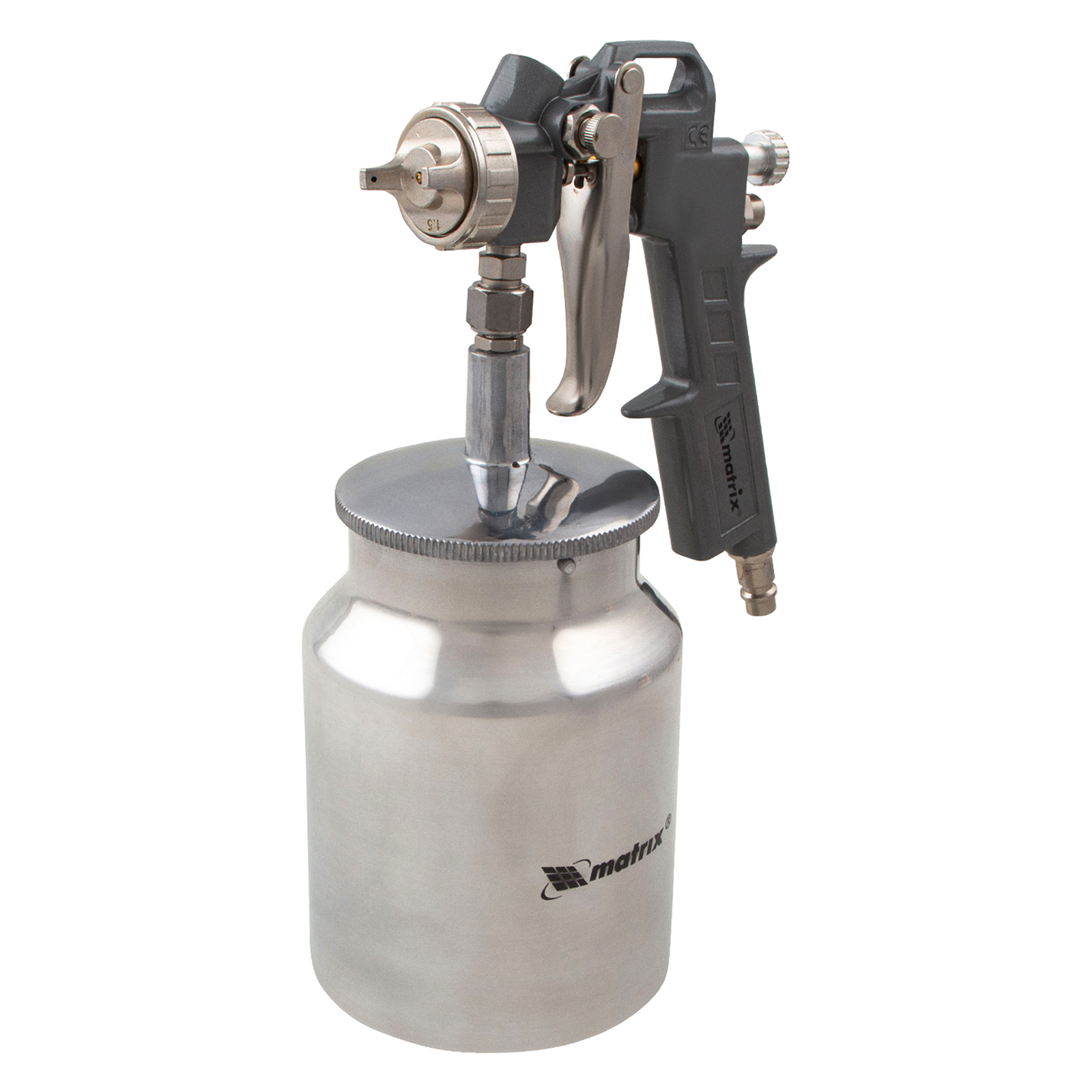 Пневматический краскораспылитель Matrix 57316 с нижним бачком объемом 1,0 л и соплами диаметром 1,2, 1,5 и 1,8 мм используется для окрашивания металлических, деревянных, керамических и пластмассовых поверхностей. Благодаря сменным соплам краскораспылитель может работать с различными по густоте составами: лаком, шпаклевкой, краской. Он пригодится на стройке, в автомастерской и на мебельном производстве.