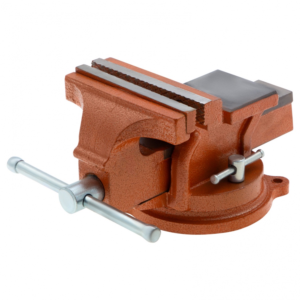 Поворотные слесарные тиски Sparta 186255 с наковальней и губками шириной 125 мм, — инструмент для захвата деталей размером до 75 мм. Будут полезны для обработки малогабаритных заготовок в частной мастерской или гараже.
