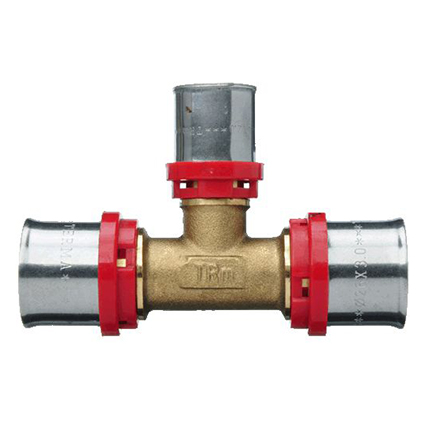 Пресс-тройник Terma представляет собой пресс-соединение для металлопластиковых труб диаметром 26 мм с ответвлением под 90 градусов для трубы диаметром 20 мм. Применяется при монтаже трубопроводов различного назначения. Пресс-гильзы изготовлены из стали AISI-304, корпус пресс-тройника из латуни.