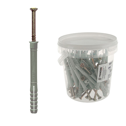 Полипропилен обеспечивает надежное сцепление с материалом основания. Резьбовой оцинкованный гвоздь повышенной прочности заранее установлен в дюбель.
