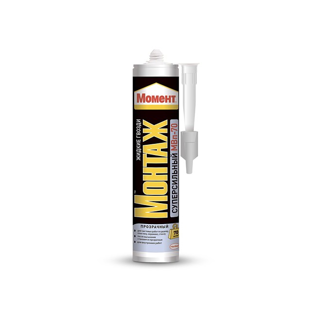 Момент Монтаж Суперсильный МВп-70 прозрачный обладает высокой начальной силой склеивания (70 кг/м2) и отлично подходит для различных ремонтных работ.
