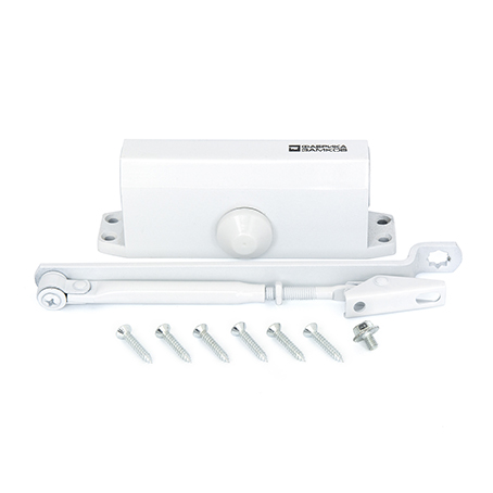 Дверной доводчик устанавливается на двери, имеющие размеры дверного полотна до 800х2000 мм или массу от 40 до 60 кг.