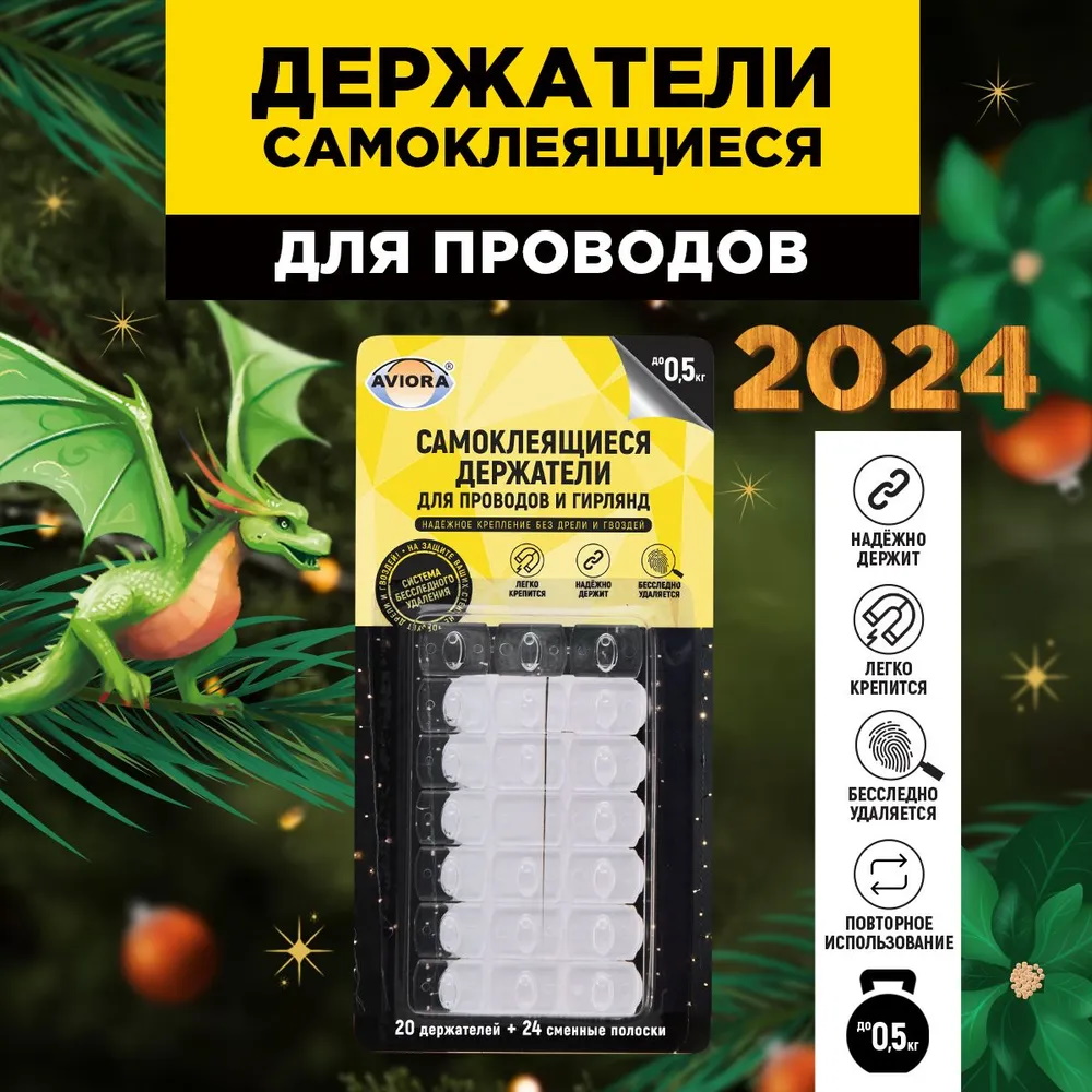 Самоклеящиеся держатели AVIORA на клеевой основе предназначены для фиксации проводов и гирлянд. Комфортное использование обеспечивается благодаря легкой фиксации, надежному креплению и системе бесследного удаления.