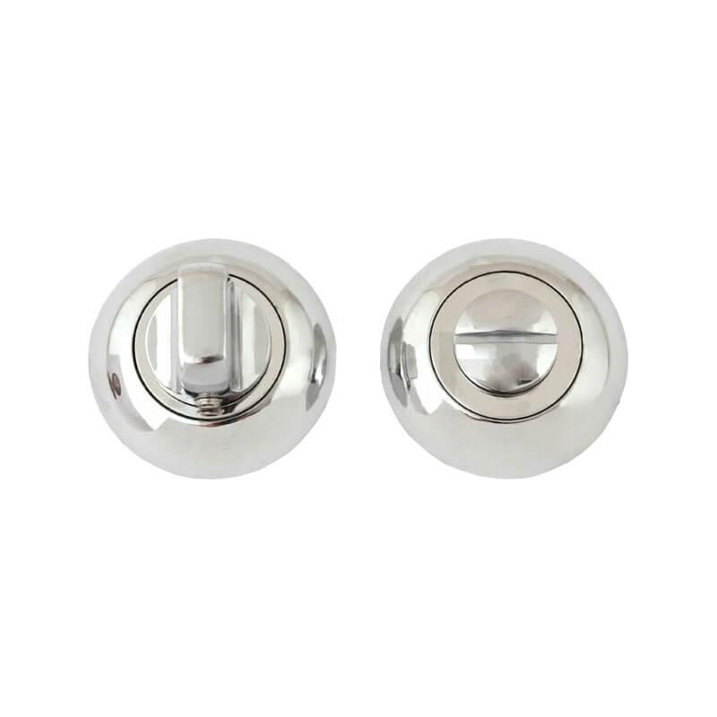 Завёртка дверная (хром) применяется для запирания ванных комнат и санузлов. Штампованный ригель и корпус из холоднокатаной стали. Износостойкая пластиковая ручка.