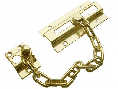Для открывания двери на безопасное расстояние, а также предотвращения распахивания двери. Пластина с прорезью крепится на дверное полотно, а пластина с цепочкой на дверную коробку. Материал: инструментальная сталь с покрытием.