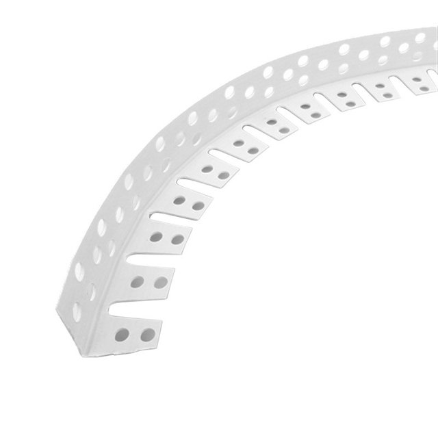 Уголок из перфорированного ПВХ (арочный). Назначение: — для выступов по форме дуги, арки, полукруга или змейки; — накладывается на угол для придания углу жёсткости; — для упрощения штукатурных работ.
