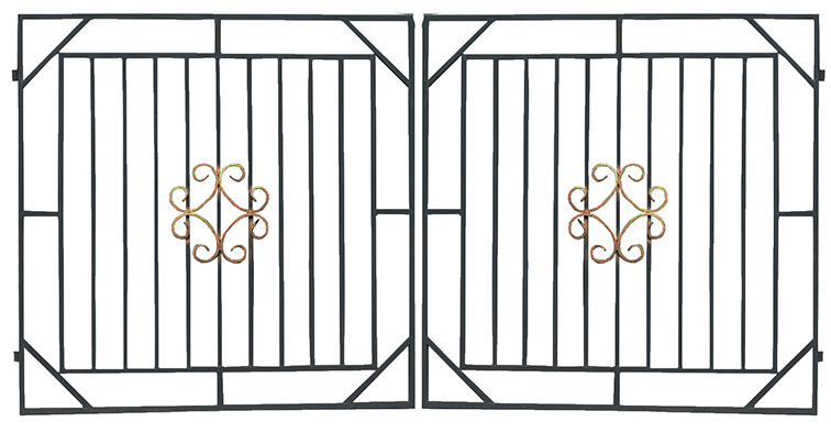 Распашные ворота "Решётка" - станут прерасным украшением вашего въезда на участок. Выполненные в дизайнерском стиле с красивыми завитками, окрашенными в золотистый цвет, они предназначены для тех, кто не желает полностью ограждать свою землю от посторонних глаз глухим забором. Лёгкие и компактные ворота "Решётка" - отличное решение для тех, кто ценит презентабельность и эстетику кованых заборов, но желает обойтись минимальными затратами.