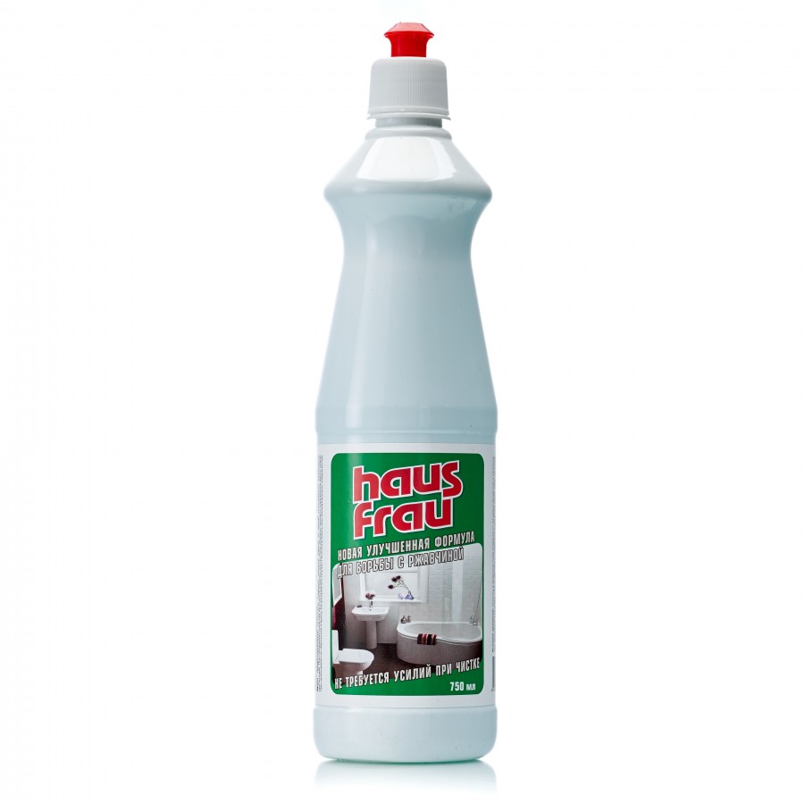 Чистящее средство для сантехники Haus Frau, гель, 750 мл. Предназначено для чистки, дезодорации и удаления устойчивых загрязнений: мочевого камня, отложений солей жесткости, ржавчины с унитазов, фаянсовых раковин и кафельных поверхностей, а также чистки металлических и полимерных поверхностей. Придает поверхностям блеск, возвращает их естественную белизну. Благодаря загущенной формуле равномерно распределяется и не стекает с наклонных поверхностей. Обеспечивает свежий запах.