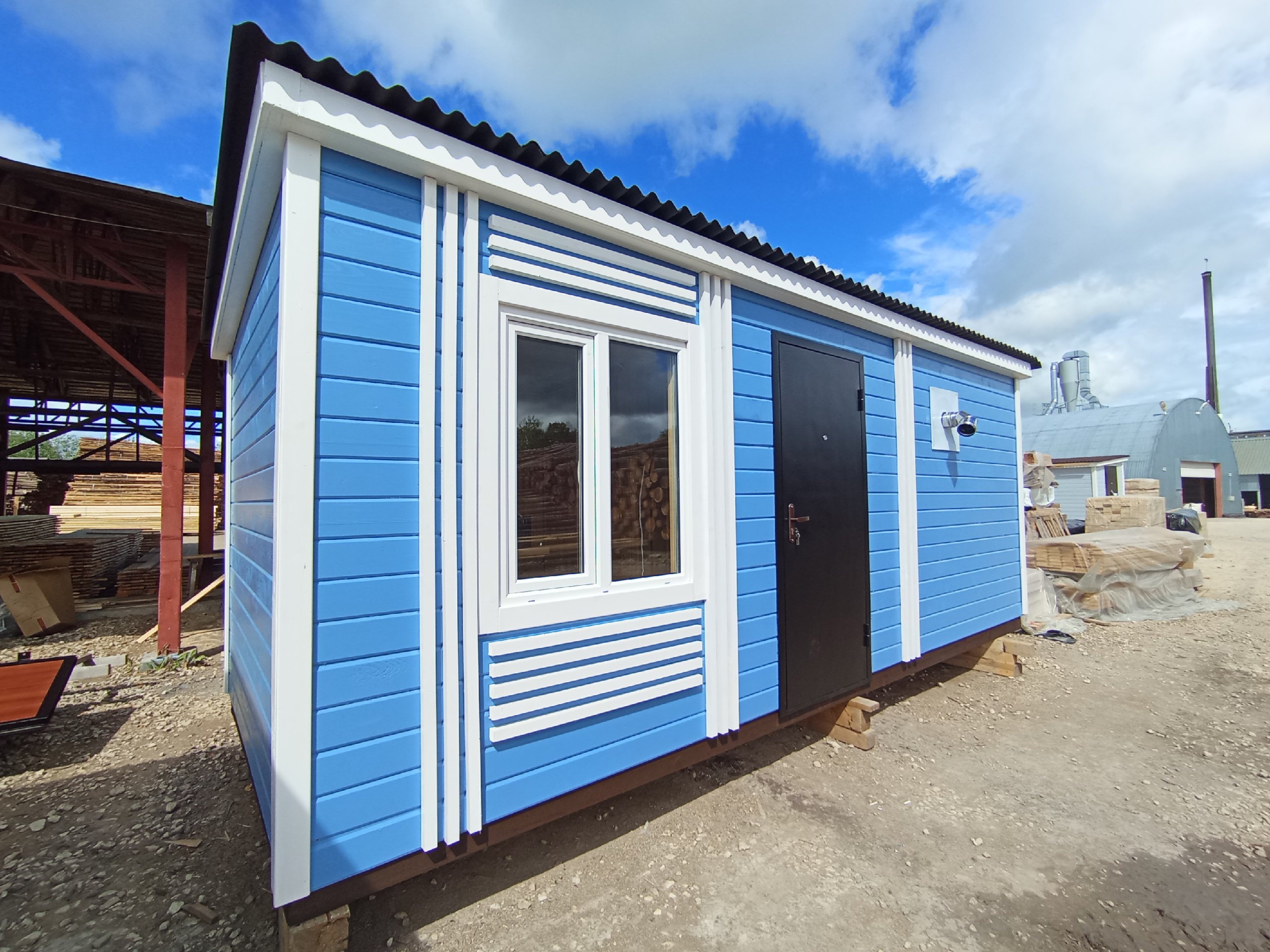 Стены -Снаружи имитатор бруса обработан атмосферостойким антисептиком.