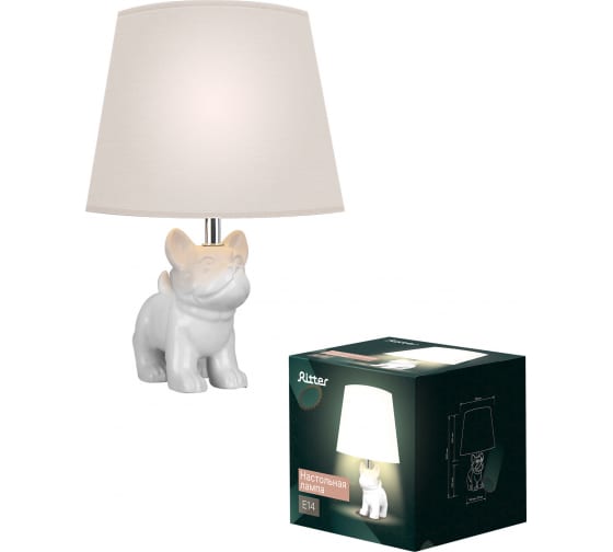 Настольный светильник RITTER с абажуром BUDDY, белый/белый, E14, max. 40Вт, 1,6 м 52703 9 - оригинальная лампа белого цвета средних размеров с фарфоровым основанием в виде щенка и текстильным абажуром. Станет уместным украшением гостиной, кабинета или спальни в классическом стиле. Отличный подарок для любителя нетривиальных деталей в интерьере. Шнур питания длиной 1,6 м с выключателем и евровилкой.