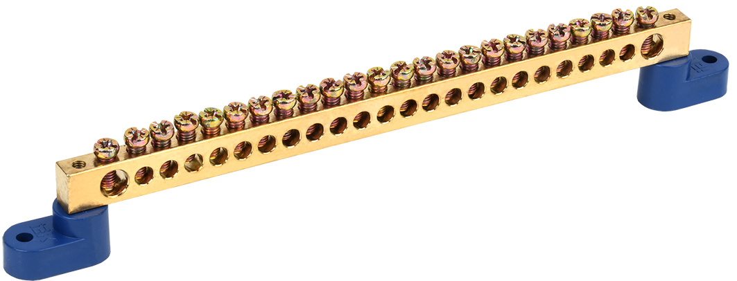 Шины с изолятором типа ШНИ предназначены для электрического и механического соединения нулевых, защитных и фазных проводников. Конструктивно шины ШНИ выполнены из латунной шины, установленной на пластиковый изолятор или в изолятор, изготовленный из самозатухающего пластика.