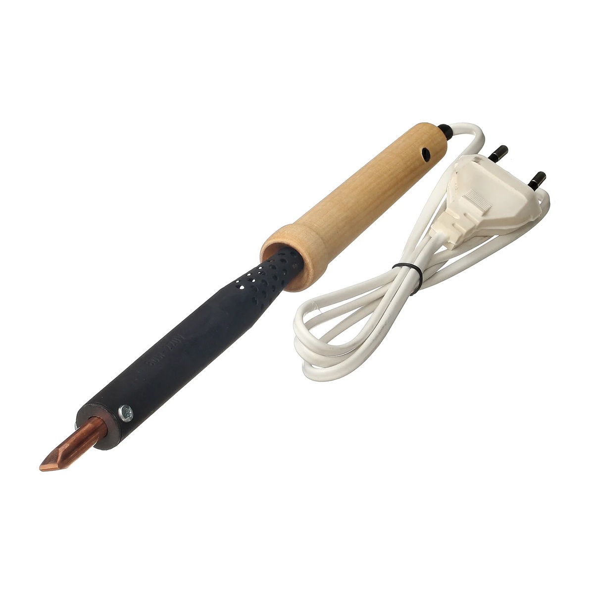Предназначен для пайки проводов, микросхем и мелких деталей. Оснащен съемным медным жалом, нагревательным элементом в виде нихромовой спирали и деревянной рукояткой.