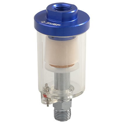 Влагоотделитель "ЭКСПЕРТ" Зубр 06468 используется для улавливания капель конденсата, которые двигаются в пневмосистеме с потоками воздуха.