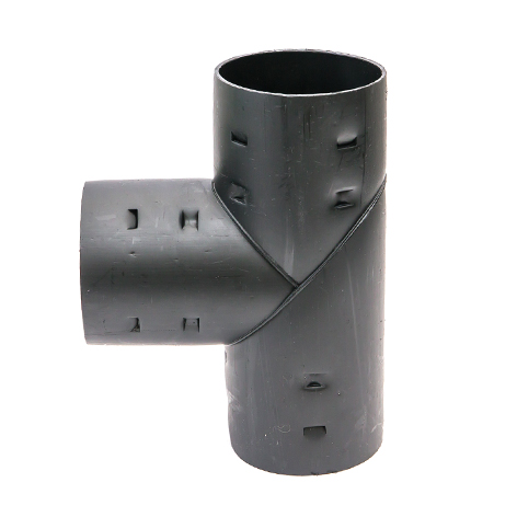 Тройник представляет собой пластиковый элемент в виде буквы "Т" со специальными фиксирующими выступами с внутренней стороны, обеспечивающими надежное соединение, либо может поставляться в гофрированном виде.