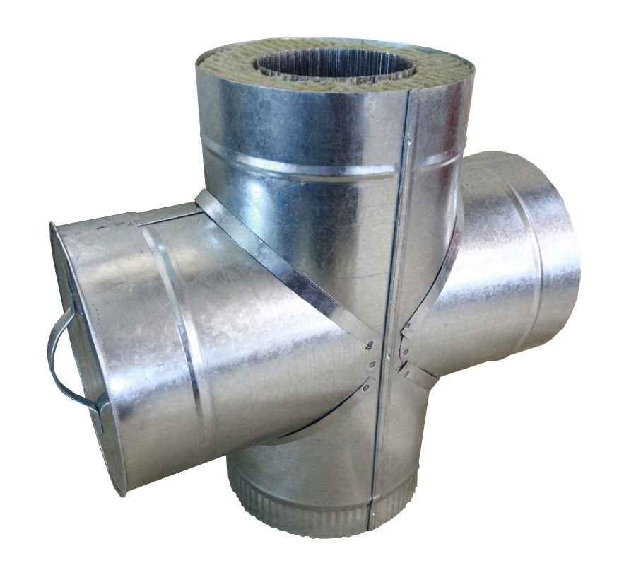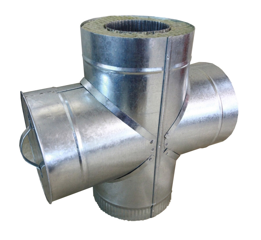 Элемент дымохода Сендвич-четверник 150/220 мм. 90" нерж/оцин. сделан из нержавеющей стали AISI 439 толщиной 0,5 мм.