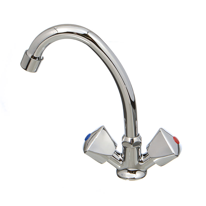 Смеситель Ex-Promt с классическими поворотными кранами. Встроенный в излив смесителя аэратор смешивает струю воды с воздухом и делает струю воды нежнее и мягче.