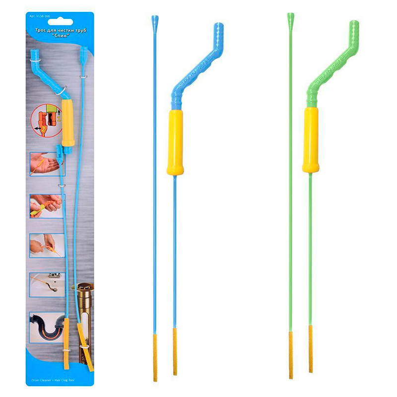 Трос для чистки сливных труб и стоков должен быть под рукой на вашей кухне и ванной. С таким помощником Вы легко избавитесь от засоров, не прибегая к услугам сантехника. Тонкий трос оснащен щеточкой-ершиком на конце для устранения таких засоров, как волосы или другого трудноудаляемого мусора. Его цепкая поверхность не оставит шансов ни одному засору! Трос имеет 2 насадки разной длины для того, чтобы справиться с любым засором, на какой бы глубине он не находился. Очень прост в использовании: -выберите нужную длину насадки для троса; -защелкните его в ручке; -сдвиньте вращающуюся ручку (втулку) вниз, оставляя ее подвижной на тросе; -опустите трос в отверстие с предполагаемым засором; -вращайте трос за ручку, держа за подвижную втулку троса; -удалите засор из трубы, вынимая трос; -очистите трос после использования и промойте его под проточной водой. Вы можете использовать специальные средства для прочистки труб вместе с этим тросом, чтобы добиться наилучшего результата. Изготовлено из пластмассы (ABS) и полиами