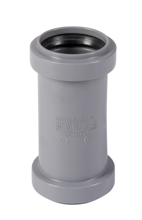 Муфты изготовленные из полипропилена и сополимеров пропилена, применяются для систем хозяйственно-бытовой канализации зданий при максимальной температуре постоянных стоков 80ºС и кратковременных (в течение 1 мин.) стоков с температурой до 95ºС при максимальном их расходе 30 л/мин. Муфта служит для соединения канализационных труб, не имеющих раструб либо в случае их ремонта.
