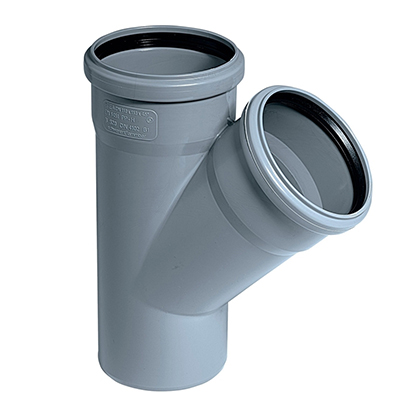 Тройник для внутренней канализации предназначен для разветвления потока воды на два направления в одной плоскости. Используется с трубами канализационными внутренними диаметром 110 мм. Обеспечивает отвод на 45º.