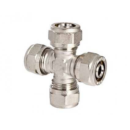Крестовина предназначена для разветвления направления потока воды в системах водоснабжения и отопления на три направления. Используется для соединения металлопластиковых труб диаметром 16 мм методом обжима.