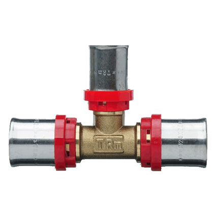 Пресс-тройник Terma представляет собой пресс-соединение для металлопластиковых труб диаметром 26 мм с ответвлением под 90 градусов для трубы диаметром 16 мм. Применяется при монтаже трубопроводов различного назначения. Пресс-гильзы изготовлены из стали AISI-304, корпус пресс-тройника из латуни.