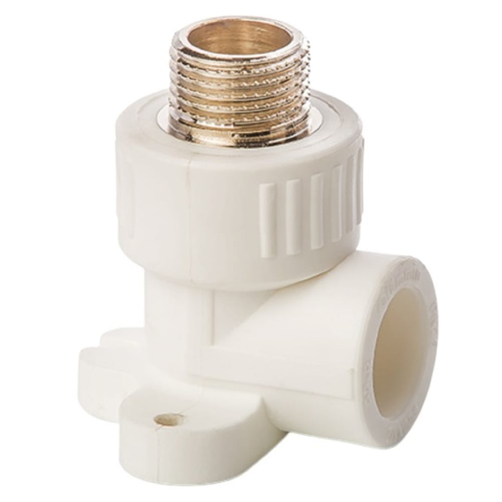 Угольник LAMMIN PPR с креплением, НР 25х3/4" Lm31054025020 полипропиленовый, с наружной резьбой предназначается для соединения полипропиленовых труб (с армированием или без) с металлическими трубами или запорными клапанами в систему трубопровода.