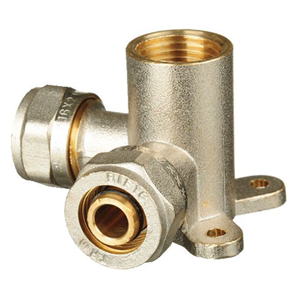 Тройник ТRm с креплением предназначен для создания разъемных и неразъемных соединений металлопластиковых труб с диаметром подключения 16х16х1/2 ц/ц/г. изготовлен из латуни «ЛС-59» в соответствии с международным стандартом качества CW617N, что гарантирует длительный срок эксплуатации изделия (свыше 50 лет). Нормативное давление составляет 25 бар.