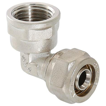 Фитинг обжимной – угольник с переходом на внутреннюю резьбу для металлополимерных (металлопластиковых) трубопроводов. Резьба фитинга – внутренняя трубная по ГОСТу 6357.