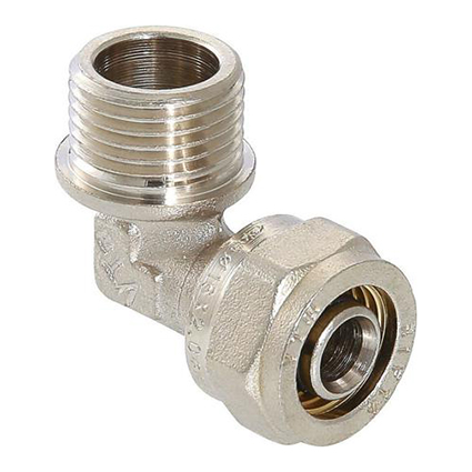 Фитинг обжимной – угольник с переходом на наружную резьбу для металлополимерных (металлопластиковых) трубопроводов. Резьба фитинга – наружная трубная по ГОСТу 6357.