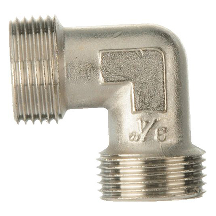 Уголок TERMA равнопроходный предназначен для создания соединения трубопровода диаметром 3/4" (три четверти дюйма) под углом 90°, резьба наружная. Изготовлен из горячепрессованной латуни с никелированным покрытием, номинальное рабочее давление 10 бар, максимальное кратковременное - 30 бар, рабочий диапазон температуры от -20°C до +120°C.