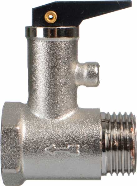 Клапан с курком является элементом системы подключения водонагревателя и выполняет функцию мини-группы безопасности. Совмещает функции обратного клапана, предохранительного клапана и сливного крана. Заводская настройка клапана (давление при котором он начинает срабатывать) составляет 8 бар. Давление полного открытия клапана – 8,5 бар.