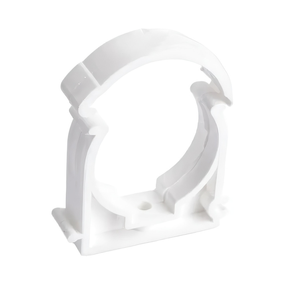 применяется для крепления PP-R трубопроводов к стенам, перекрытиям, потолку и полу из разных материалов. Готовые изделия выполнены в виде хомута и предусматривают наличие отверстия для крепежного элемента.