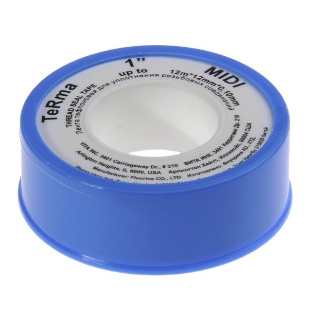 Лента ФУМ TERMA MIDI - современный качественный материал для уплотнения различных типов соединений в трубопроводах. Ленту ФУМ широко используют при монтаже и ремонте систем водопровода и канализации в быту и на производстве. Лента представляет собой добротную альтернативу традиционному сантехническому льну. Наличие ленты в резьбовом соединении улучшает посадку и уплотнение его элементов. фум лента является весьма удобным, безопасным и технологичным материалом, который можно успешно применять в большинстве ситуаций. Полученные с ее помощью герметичные соединения отличаются долговечностью и надежностью.