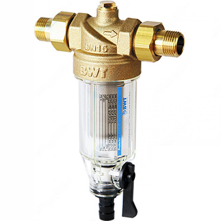 Водоочиститель BWT Protector Mini Х/в 1 прямая промывка Н604Р05 позволяет очистить проточную холодную воду от нерастворимых примесей. Фильтрующий элемент изготовлен из высококачественной стали. Очистка осуществляется при помощи прямой промывки. Конструкция обладает верхней частью из латуни и нижней частью из пластика.
