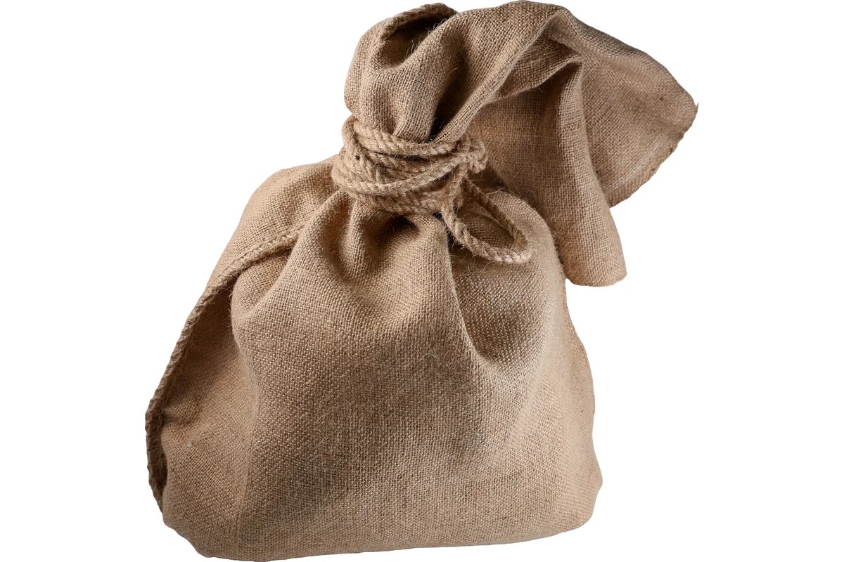 Мешок джутовый 95х56 см, 380 г изготовлен исключительно из натурального джутового материала первого сорта с однородным плетением.