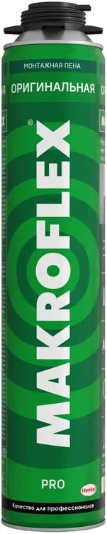 Пена монтажная Макрофлекс Оригинальная ПРО профессиональная летняя 750 мл.Преимущества:- Высококачественная однокомпонентная, отверждаемая за счет реакции с влагой воздуха, полужесткая полиуретановая пена с превосходным соотношением открытых-закрытых ячеек и высокой механической прочностью.- Продукт прост в употреблении, наносится при помощи специального монтажного пистолета.- Для получения наилучшего результата рекомендуется использовать пистолеты, испытанные и утвержденные производителем продукта.- Выход готовой пены до 50 л. (зависит от температуры и влажности воздуха и др.)- Контроль и точность нанесения.- Высокая адгезия к большинству строительных материалов. Для повышения адгезии некоторых металлических поверхностей может потребоваться предварительная обработка. Имеет слабую адгезию к полиэтилену, тефлону.- Высокая тепло- и звукоизоляция.- Мелкопористая структура.- Не деформирует конструкции.В