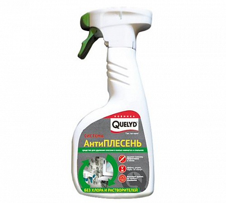 Средство для удаления плесени Quelyd АнтиПЛЕСЕНЬ для комнат и спален хорошо удаляет внутри помещений грибок, пятна плесени со штукатурки, камня, плитки, швов, пластмассы, обоев и других материалов. Средство препятствует повторному появлению плесени, не содержит растворителей, хлора и на 95% биологически разлагается.