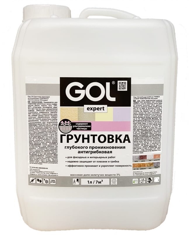 Грунтовка акриловая глубокого проникновения для интерьерных и фасадных работ предназначена для увеличения сцепления строительных материалов и укрепления сильновпитывающих оснований. Рекомендуется для подготовки различных типов поверхностей (бетон, кирпич, гипс, ДВП, ДСП, штукатурка, гипсокартон и др.) под все виды декоративной отделки. Укрепляет старые, рыхлые, непрочные, сильно впитывающие основания. Уменьшает и выравнивает впитывающую способность подложки. Сокращает расход материалов. Надёжно защищает обработанную поверхность от гниения, разрастания грибка, лишайников, появления плесени. Для индикации обработанных поверхностей могут колероваться универсальными колеровочными пастами.