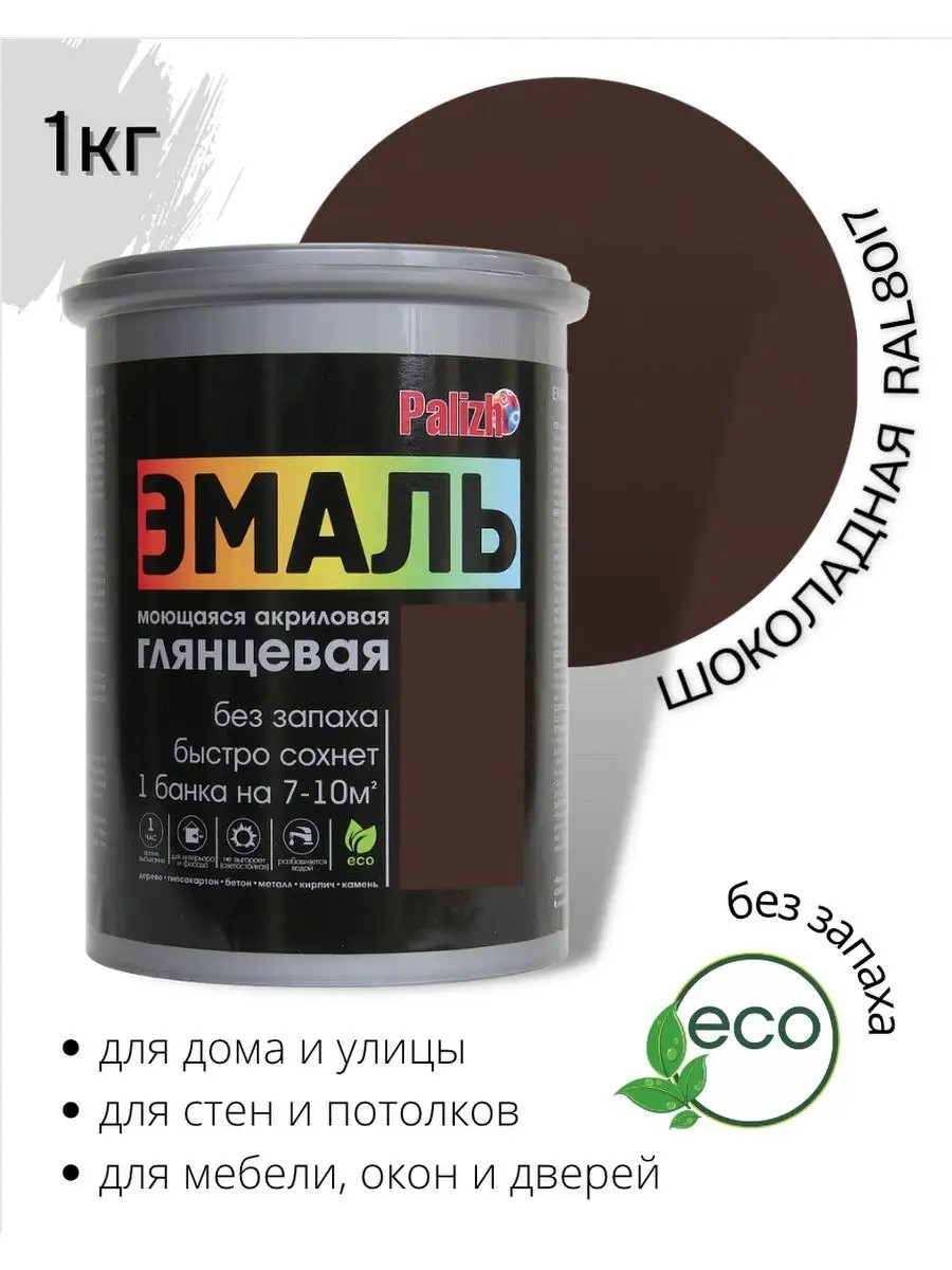Акриловая эмаль PALIZH глянцевая 1кг предназначена для покраски поверхностей из дерева, кирпича, бетона, металла, в том числе оконных рам, дверей, мебели. Средство универсальное и может использоваться как для фасадных, так и интерьерных работ.