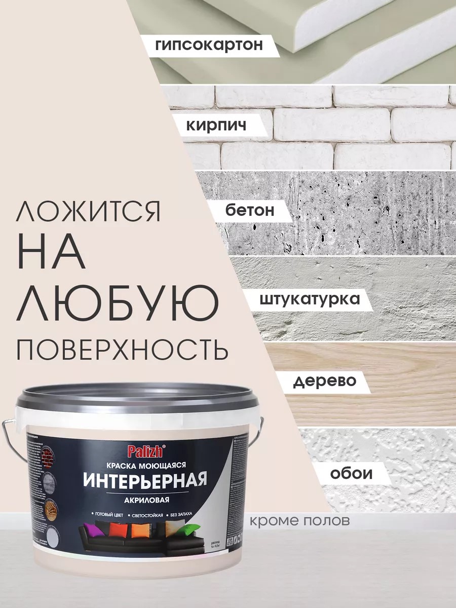 Акриловая интерьерная моющаяся краска PALIZH 303 крем-брюле 3,7кг предназначена для декоративной обработки потолков и стен.