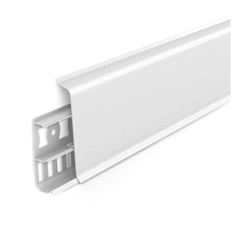 Предназначен для отделки, укладывается по периметру помещения между напольным покрытием и стеной. Плинтус состоит из двух частей, одна из которых крепится к стене, а вторая, декорированная, прикрепляется сверху с помощью специальных защелок. Между двумя частями образуются кабель-каналы, в которые можно проложить силовой, компьютерный, телевизионный и др. кабели. Мягкий обрезиненный край плинтуса предотвращает попадание влаги и пыли между стеной и полом.