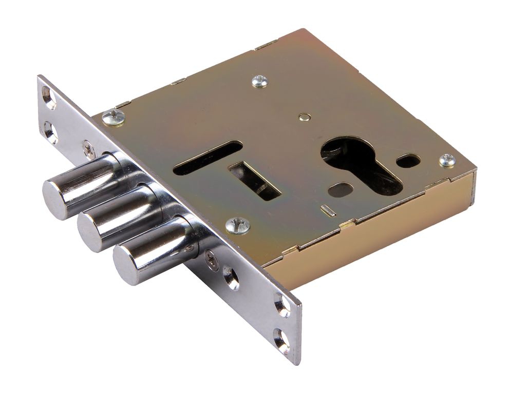 Предназначен для установки в металлические двери, в качестве основного замка. Имеет 3 ригеля диаметром 15 мм.
